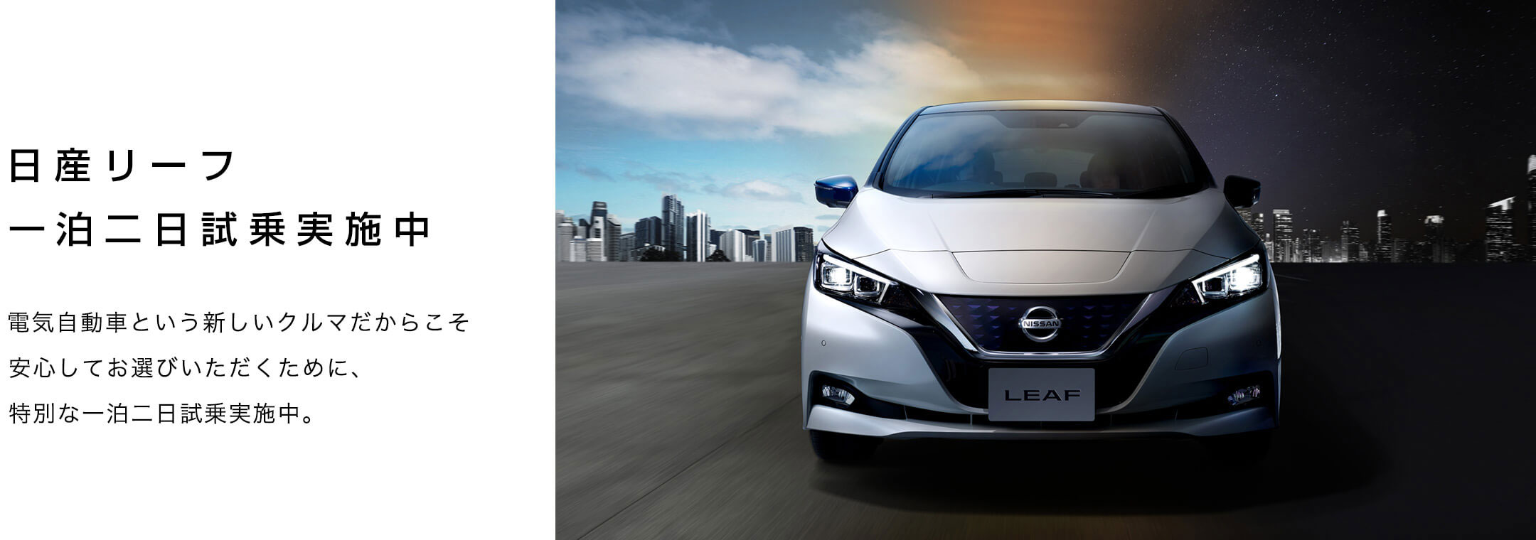 ※アリア、リーフはグレードによって航続可能距離が異なります。詳しくは各WEBカタログをご確認ください。※一充電走行距離は定められた試験条件での値です。お客さまの使用環境(気象、渋滞等)や運転方法(急発進、エアコン使用状況等)、整備状況(タイヤの空気圧等)に応じて値は異なります。電気自動車は、走り方や使い方、使用環境等によって航続可能距離が大きく異なります。本諸元の交流電力量消費率および一充電走行距離の表示は、 「WLTCモード」です。WLTCモードは、「市街地」「郊外」「高速道路」の各走行モードを平均的な使用時間配分で構成した国際的な走行モードです。閉じるリアルなEVドライブレポートはこちら